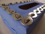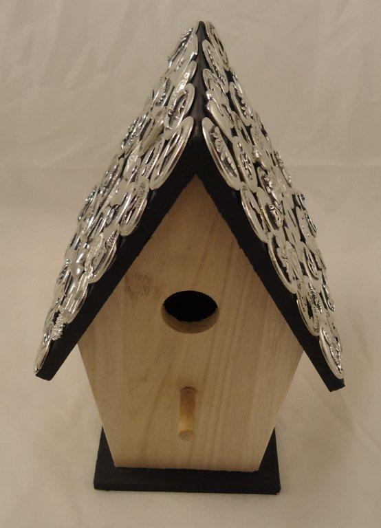 Step 3: With your hot glue gun/super glue, adhere the tokens of your choice to the roof of your bird house. I chose a variety of 64 pocket tokens.