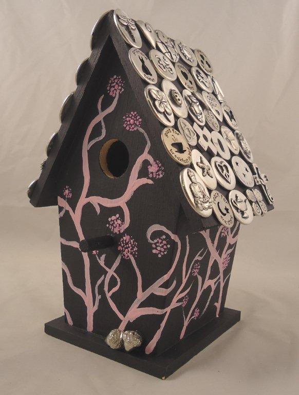 Step 1: Paint birdhouse color of your choice. I picked black to that the pink designs would really stand out!)