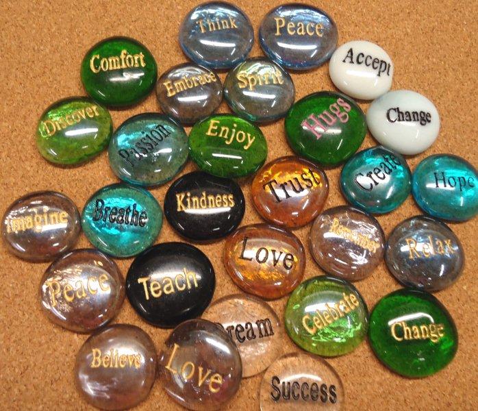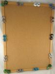 I took a plain ole’ wooden bulletin board and added a little ‘bling’ in the form of glass spirit stones. Now the board has both color AND inspiration! ~Natalie