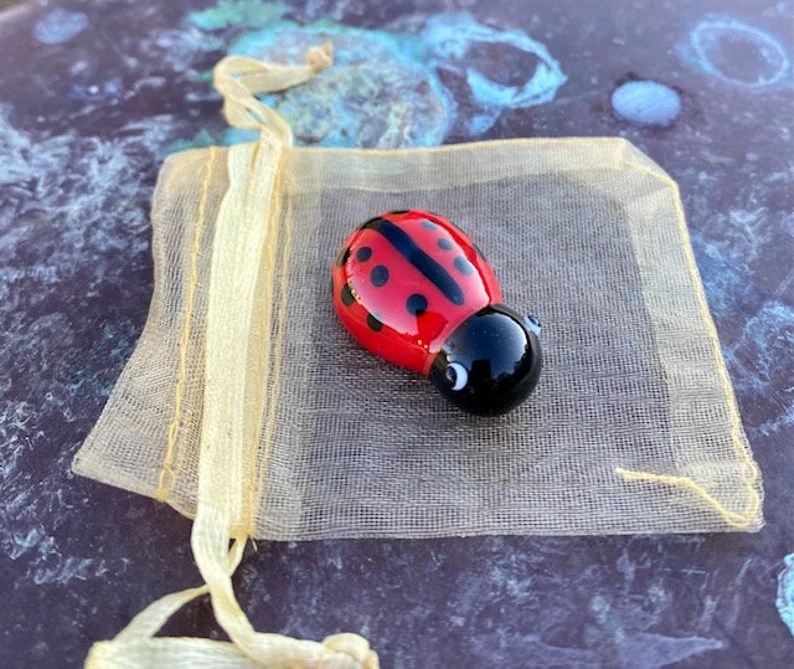 Adorable miniature turtle figurine measures 1 1/2″ x 1 1/4″. Comes in a small organza gift bag.