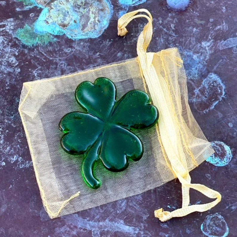 Clover Good Luck Inspiration Coins are deeply engraved and are made of lead free pewter. Inspiration Coins measure approx. 3/4″ x 1/2″. The tokens are sold as a set of 3 along with a 2″ x 2 1/2″ gold organza bag and can be used to create party favors, meditation and healing tools, gifts, wedding favors and good luck charms. The 3 tokens you will receive are double sided with a Four Leaf Clover pictured on the front and the words ‘Good Luck’ on the back. (6549-3)