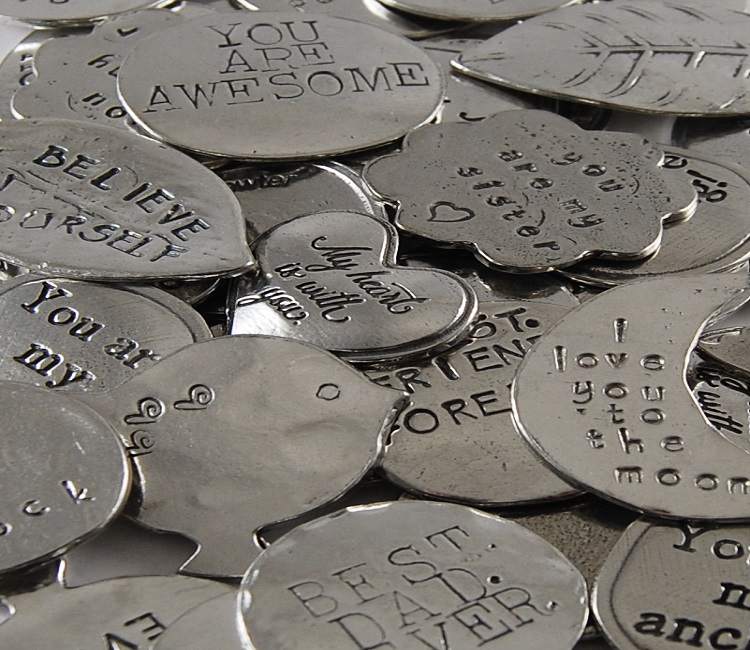 The key to ‘Happiness’ is represented in this charming mini key pocket token made of lead free pewter. Measuring approx. 1 1/2″ x 3/4″ the key features cutouts making it perfect to hang from a key chain or necklace. The reverse side has a small manufacturer’s marking.